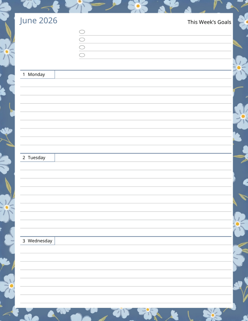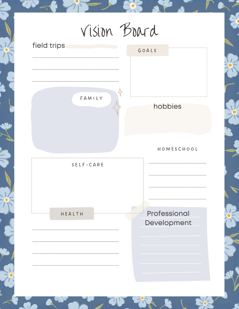 Our homeschool planner includes 2-page monthly calendars and weekly calendars for May 1, 2026, to July 31, 2027, vision statement and end of year reflection questions, vision board for each month, reminders from the Homeschool Platypus, and attendance chart.