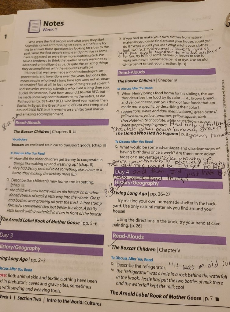 Some families choose to just use a spiral notebook and list out what they plan to do each day. When my girls were in elementary school, my lessons looked like this: