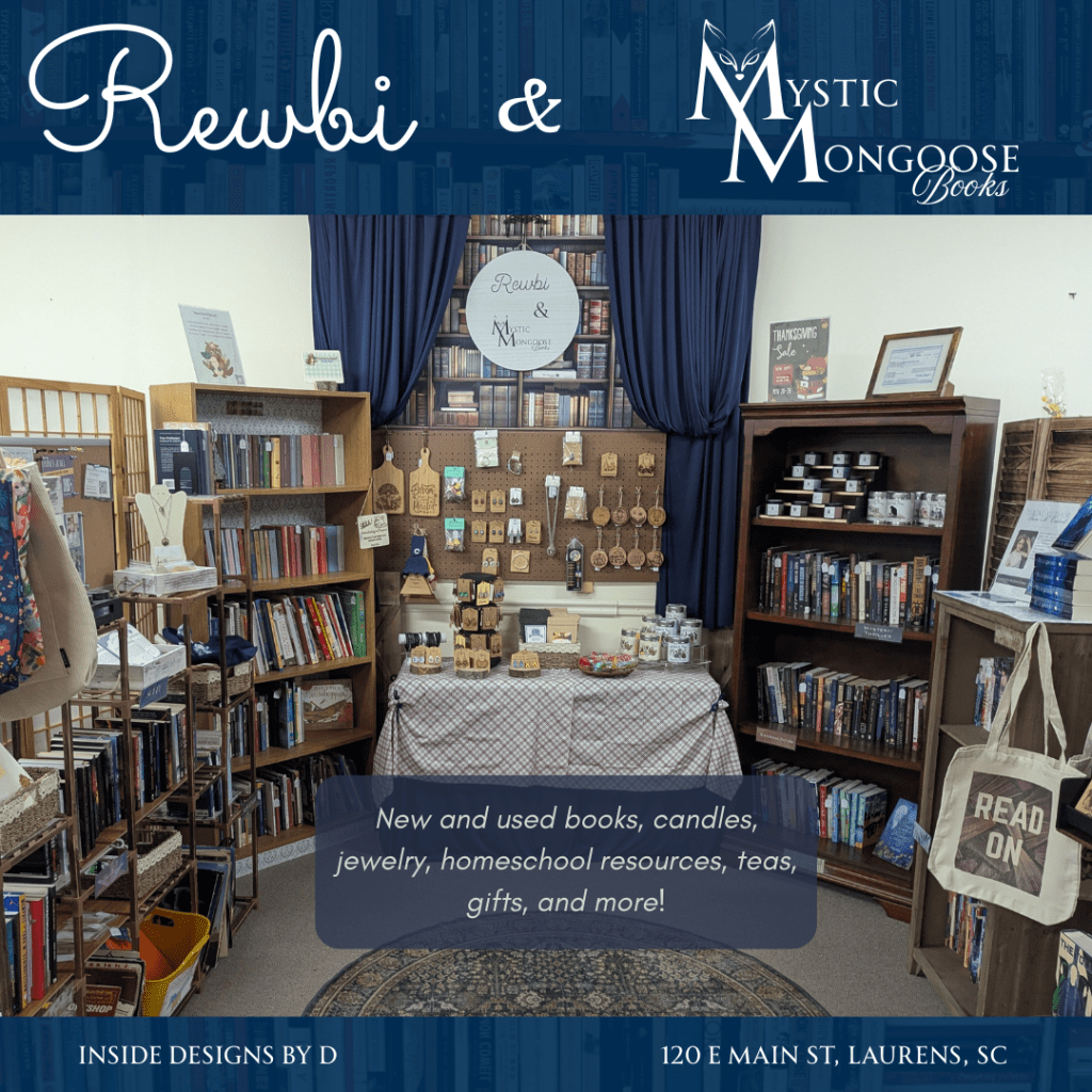 TSCHAA has a vendor store inside Designs by D called Rewbi & Mystic Mongoose Books in Laurens, SC, with a bookshelf just for homeschoolers!